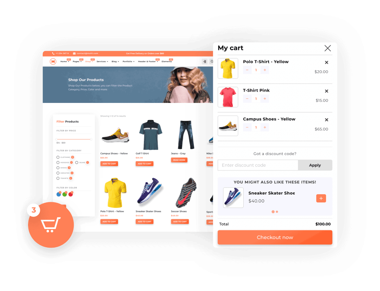 The Molti Ecommerce provides a really cool Shop Module Design.
