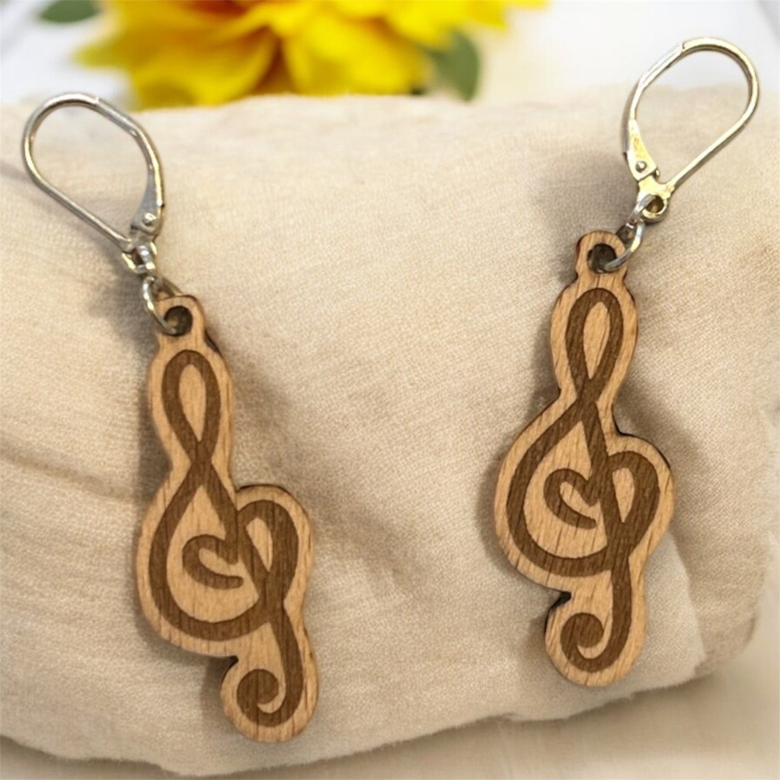 Zeigen Sie Ihre Liebe zur Musik und Natur mit diesen einzigartigen handgefertigten Ohrringen. Hergestellt aus natürlichem Holz und verziert mit der ikonischen Violinschlüssel-Lasergravur, sind diese Ohrringe eine Hommage an Authentizität und Ästhetik.