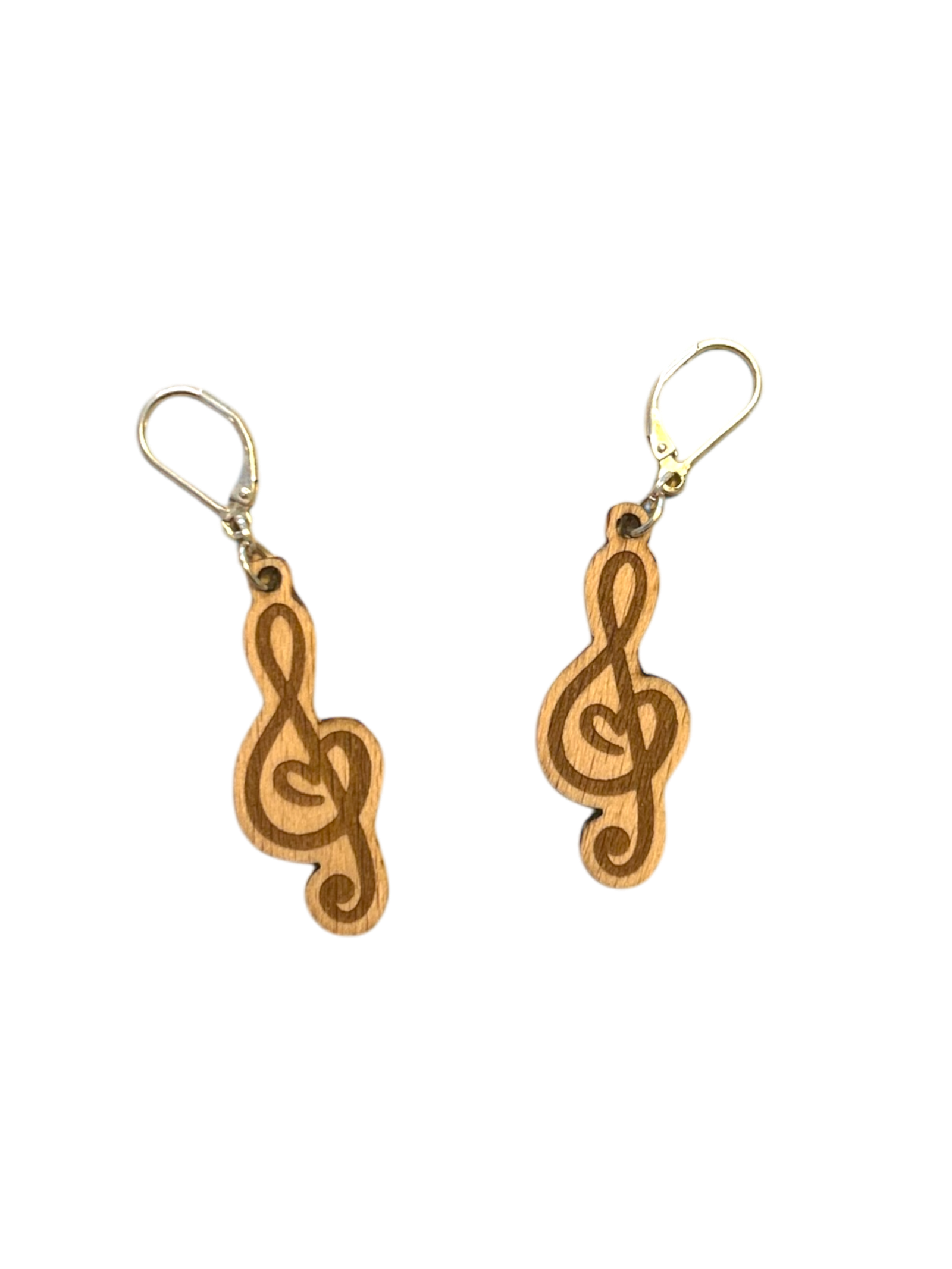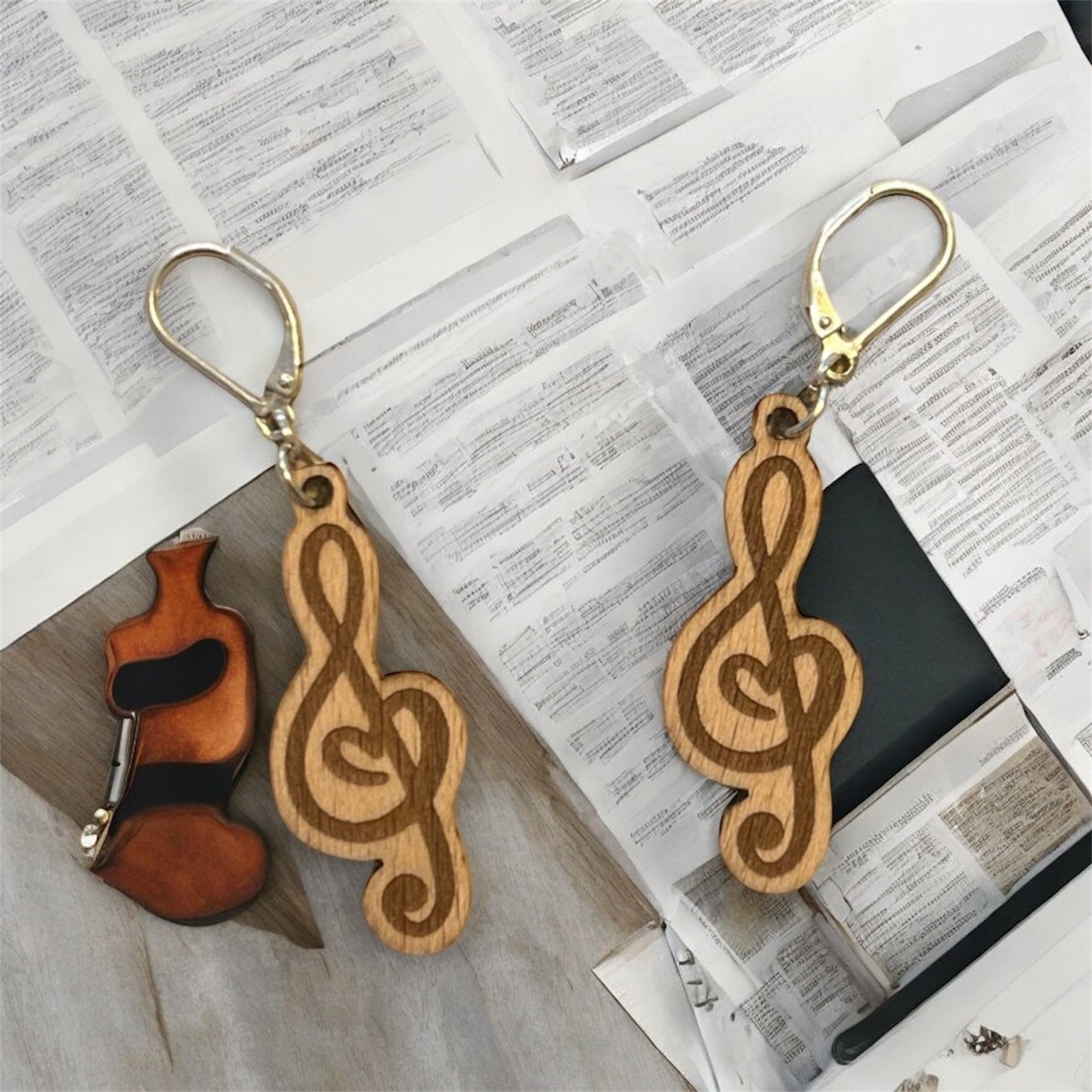 🎵 Handgefertigte Holzohrringe mit Violinschlüssel & Silber 925