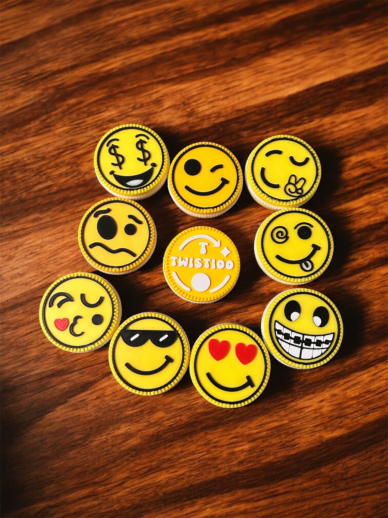 Jedes Twistioo zeigt ein anderes, ausdrucksstarkes Emoji  von fröhlich und verspielt bis hin zu lustig und ein bisschen verrückt! Perfekt für Kinder und Erwachsene, die Stress abbauen, ihre Hände beschäftigen oder einfach farbenfrohe Designs sammeln möchten.